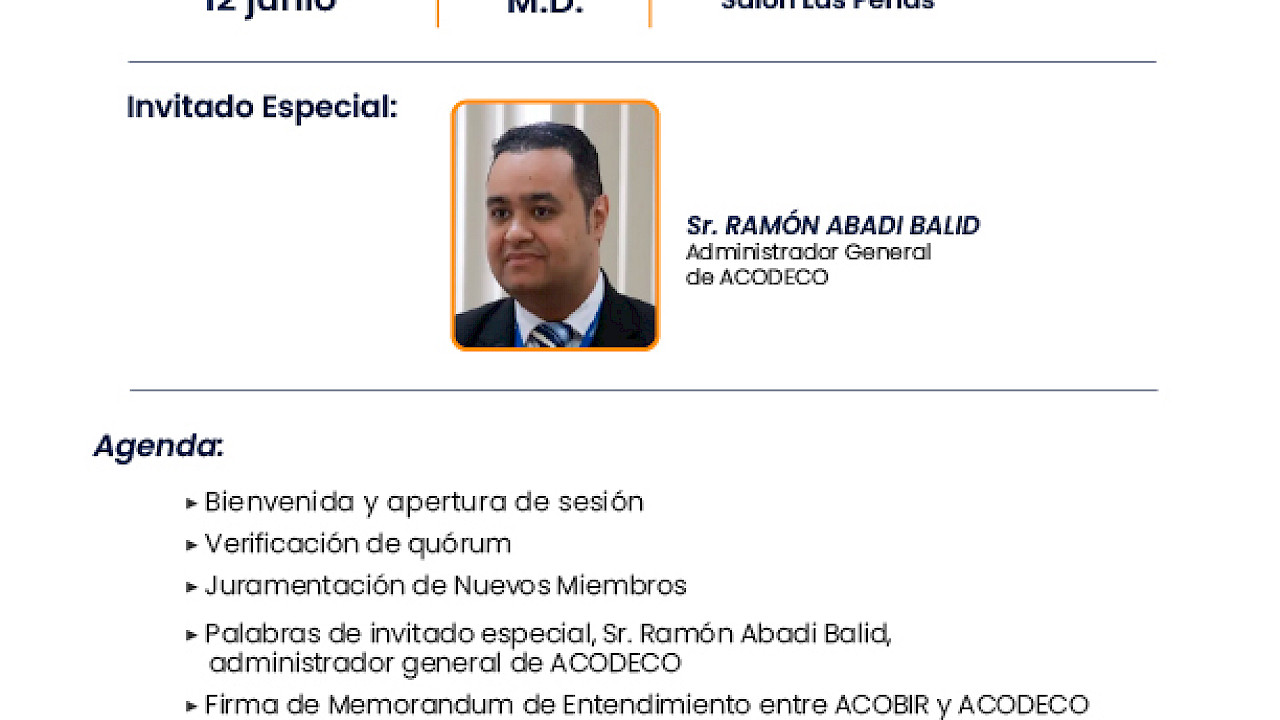 - Palabras de invitado especial, Sr. Ramón Abadi Balid, administrador general de ACODECO