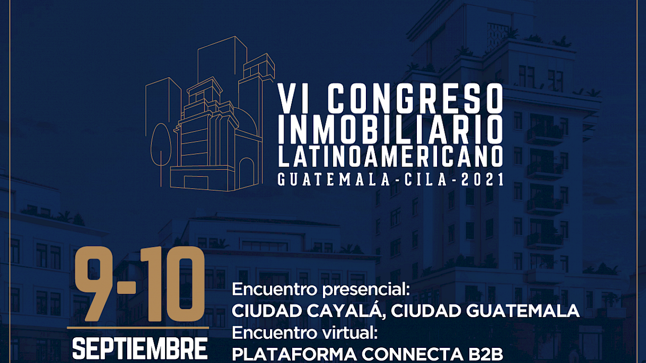 VI Congreso Inmobiliario Latinoamericano Guatemala CILA 20219 y 10 septiembre 2021Descargar PDFGuatemala será la capital del Real Estate el 9 y 10 de septiembre 2021.Prepárate y participa en el VI Congreso Inmobiliario Latinoamericano Guatemala CILA 2021.https://www.cila2021.com/